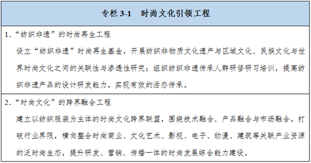 1.加大纺织行业时尚发展专项资金的支持力度。支持优势时尚品牌企业布局海外市场,引进国外先进工艺技术与设备;支持独立设计师品牌、企业品牌和区域品牌参加国际知名时装周等展演活动。