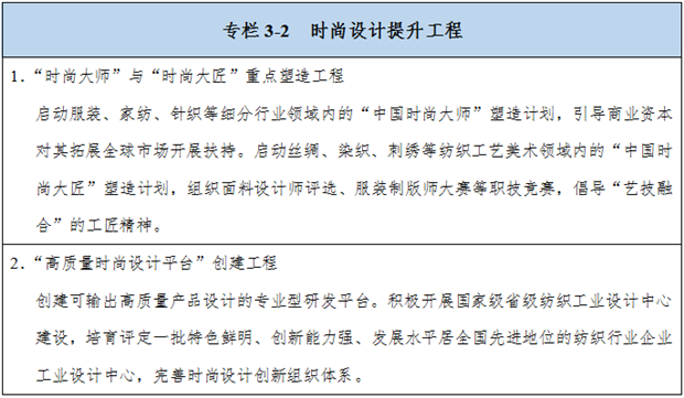 1.培育复合维度下的时尚设计人才。优化时尚人才支撑体系,完善时尚人才培养和成长体制机制。推动培育纺织产业不同细分行业领域内,复合型、多梯度的专业时尚人才。重点培育能够代表中国时尚、风格鲜明、具有市场影响力的时尚设计大师。