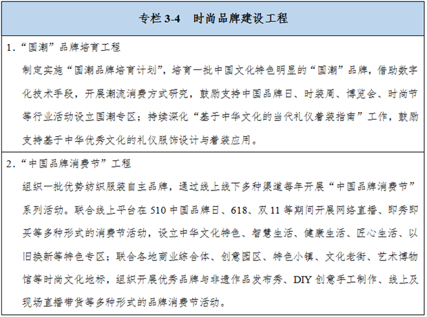 1.加强品牌的消费引领能力建设。培育一批承载中华文化、引领时尚消费的“国潮”品牌,推动企业与独立设计师开展时尚供给、创意设计与渠道建设等合作,提升参与国际竞争与合作能力,持续推进品牌价值评价,培育一批有中国特色、世界影响、时代特征的优势品牌。