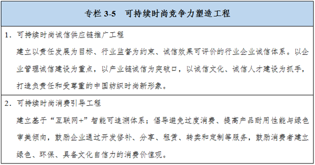 3.责任践行与绿色发展目标。打造一批绿色工厂、绿色园区和绿色供应链示范企业,组织一批企业践行产品全生命周期绿色管理,加速气候创新行动,实现从碳达峰到碳中和的跨越,形成中国纺织行业绿色制造和绿色消费的可持续时尚生态。